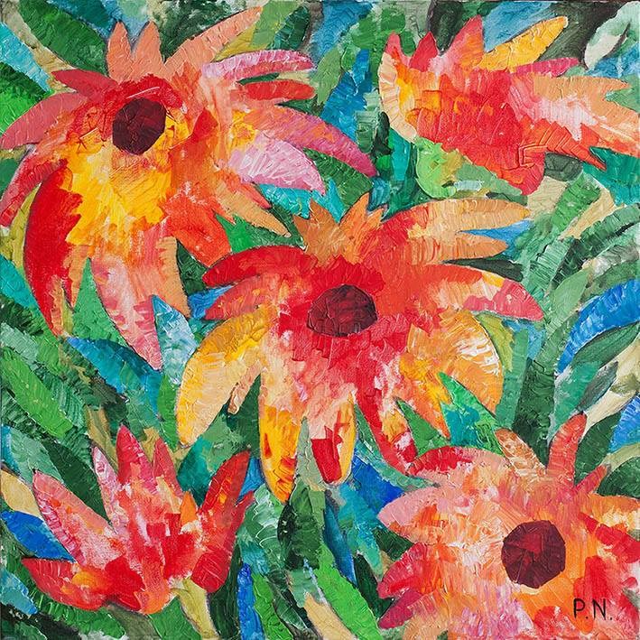 Моя цветовая гамма со временем стала еще ярче. Почему? Во-первых, мы живем в очень интересное время и, несмотря на кризис и неутешительные прогнозы экономистов, время от этого не перестает быть менее интересным. Некоторые считают, что кризис повод для обновления, не могу с этим не согласиться. Во-вторых, хорошее искусство обладает даром мощного воздействия на зрителя. И если рядом с вами искусство, наполненное энергией и силой, то вы хотите несомненно получить результат со знаком «плюс».