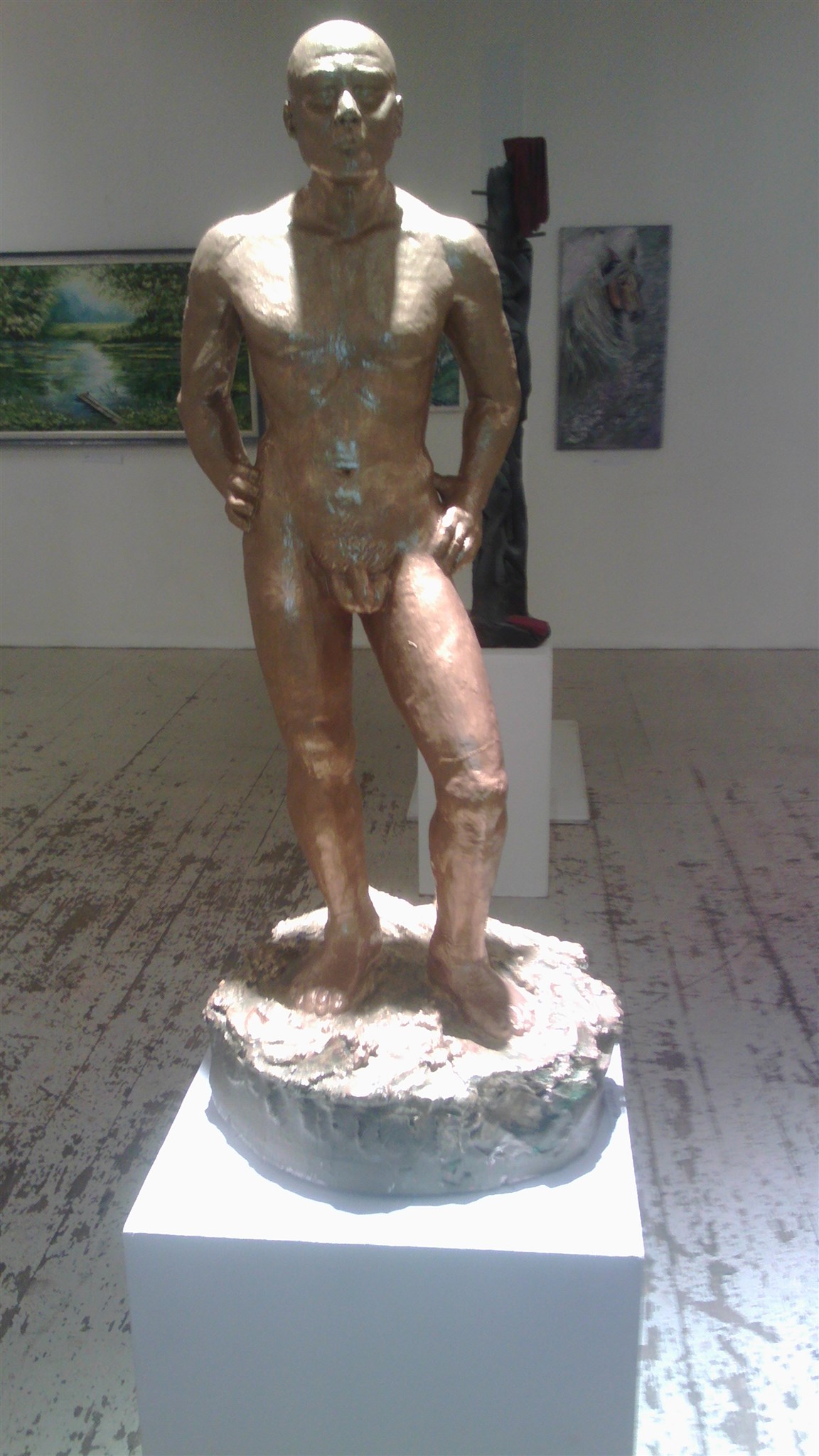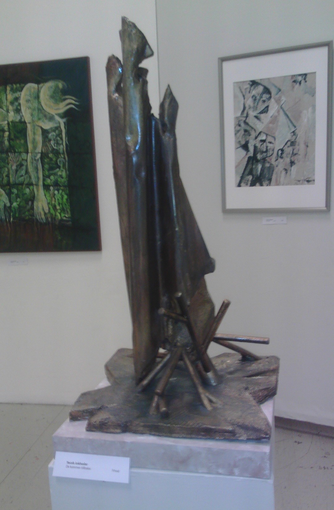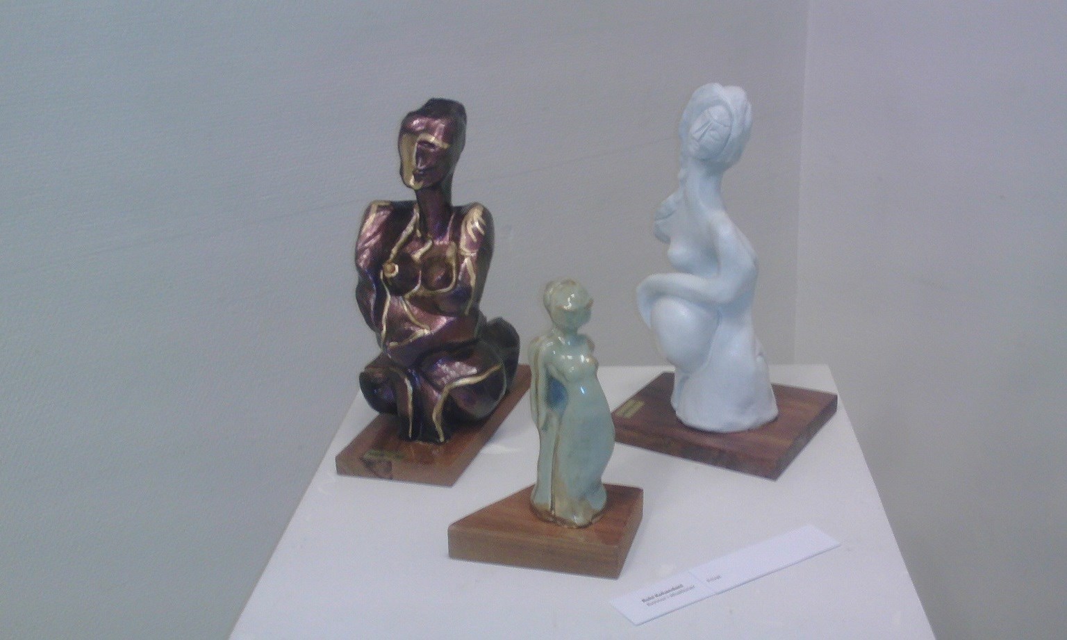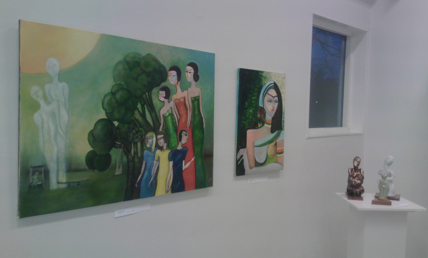Jag började "min runda" med att studera färgstarka målningar av bildkonstnären och skulptören Shakir Attiyah; stannade en längre stund framför skulpturgruppen ”Kvinnor i situationen” av Rohi Kohandani;